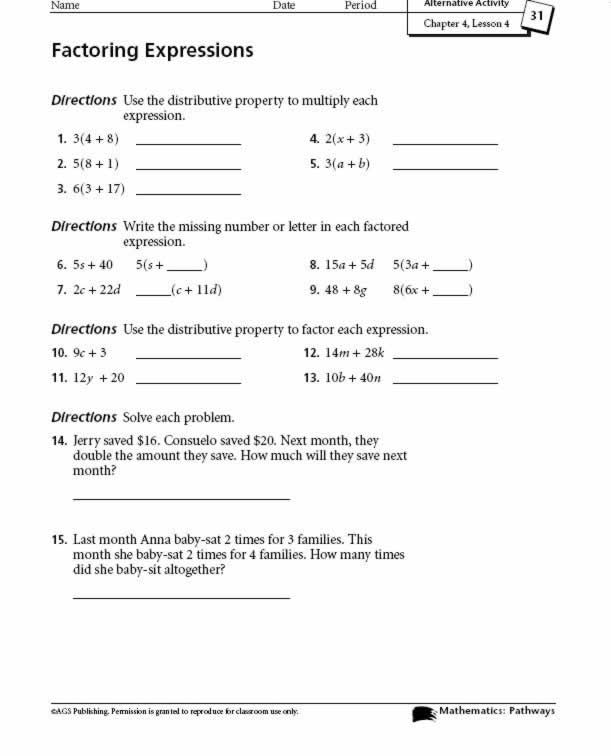 AGS Mathematics: Pathways Alternative Activity Lesson 4